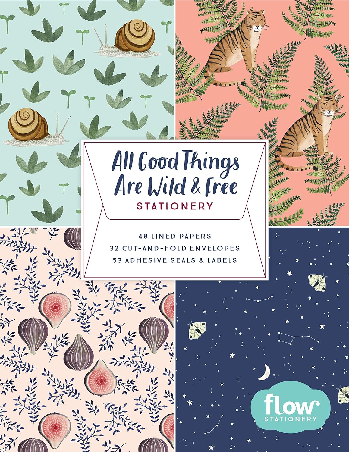 A stationery set including paper, envelopes, and seals and labels inspired by nature, from Flow, the international brand that celebrates creativity, mindfulness, and the pleasures of paper.