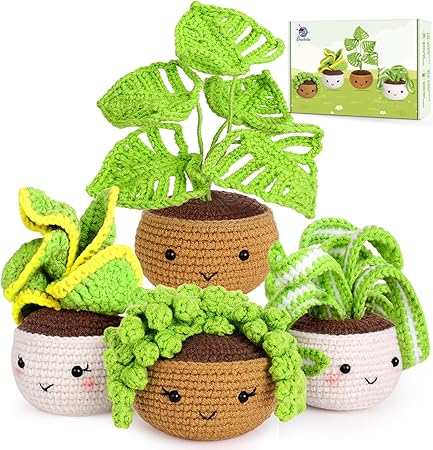 All-In-One Crochet Starter Kit: CROCHETTA beginner crochet kit includes everything you need to start: 11 different colored yarns, ample stuffing, 1 yarn needles, 8 safety eyes, 5 stitch markers, 2 ergonomic crochet hooks, 1 pair of scissors, 1 Hot Melt Glue, Iron Wires, 1 crochet 4 Plants pattern, and a beginner’s basic crochet manual. Extra 40% of Yarn in Every Color : We’ve gone the extra mile by providing an additional 40% of yarn in every color, so beginners can experiment and correct any mistakes they may make without worrying about running out of yarn. Step-By-Step Video Tutorials : CROCHETTA easy-to-follow video tutorials are tailored for complete beginners, guiding them from start to finish. With clear instructions and demonstrations, even those who have never crocheted before can dive into their first project. Unlimited Help and Support : We offer unlimited help and support through email and text. If you have any questions or run into any problems, don’t hesitate to contact us. With our guidance and your independent learning, even beginners can quickly develop new skills and abilities. Great Gift Crochet Set : Packaged in a gift box, our crochet kit makes the perfect present for anyone who loves to crochet or wants to learn a new skill. Suitable for all ages, it’s a great gift for Mom, Women, Daugther, Birthdays, Mother’s Day, Valentine’s Day, Thanksgiving, Christmas, or any occasion.